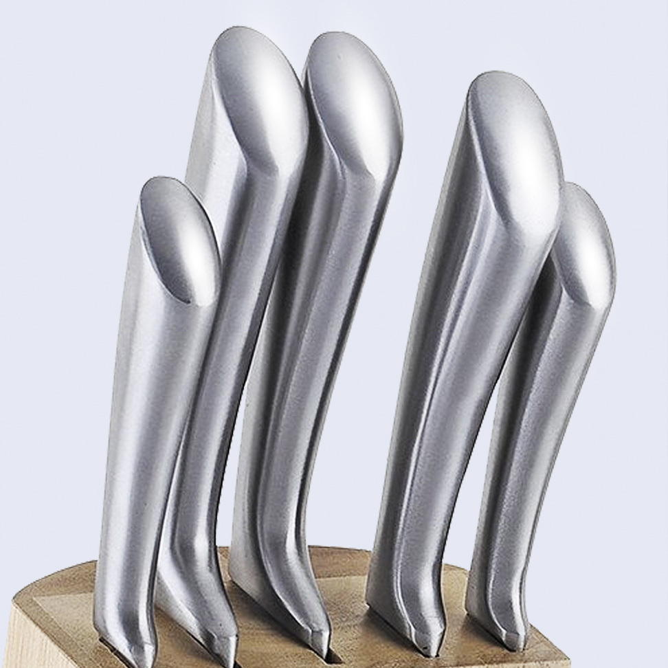 Продукты не застревают в месте крепления ручки и лезвия благодаря сплавленному с лезвием больстеру